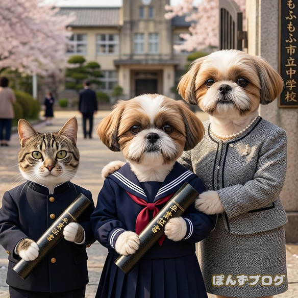ぽんずママのスーツ姿似合ってます✨かぼちゃんとはっさく君の制服もピッタリです✨かぼちゃんの学ラン姿も見たいけど(笑)