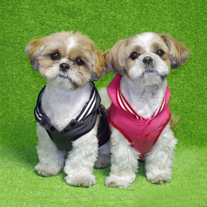 ぽんず(体重6.5kg、首周り30cm)はXLサイズを着用していますが、ぴったりです(^^) ボタンを外さなくても首が入りました。