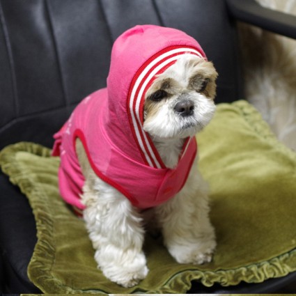 色はグレートピンクです。サイズは超小型~小型犬用ですが、XS、S、M、L、XLと豊富にそろっております。