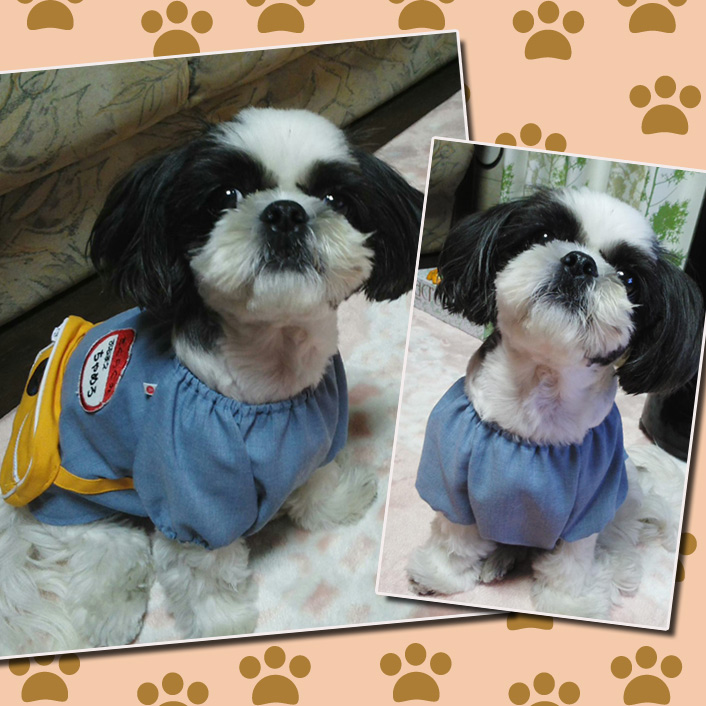 こちらも常連犬の、ちゃめろちゃん。もはやポーズがモデル犬ですね~。ちゃめろちゃんも、『幼稚園児』に変身です。
