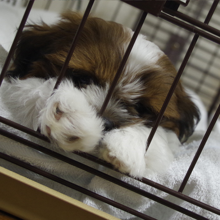 もふもふ手だけケージからちょこんと出ているのが、なんともいえないですね。