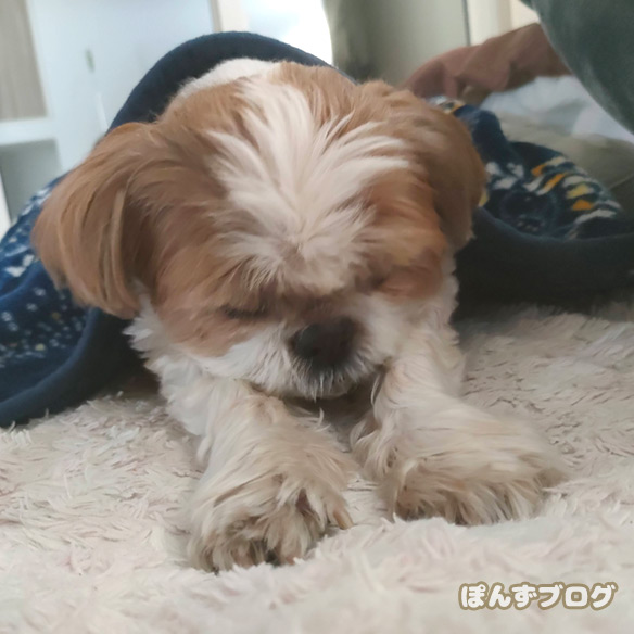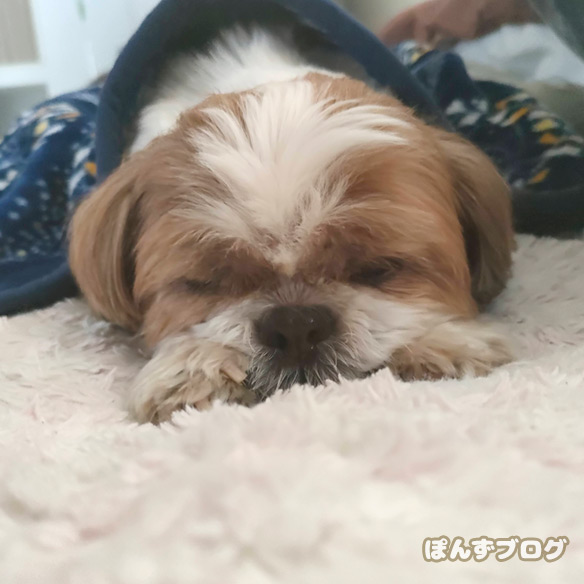 ぽんずも得意のポーズで寝てよう日。