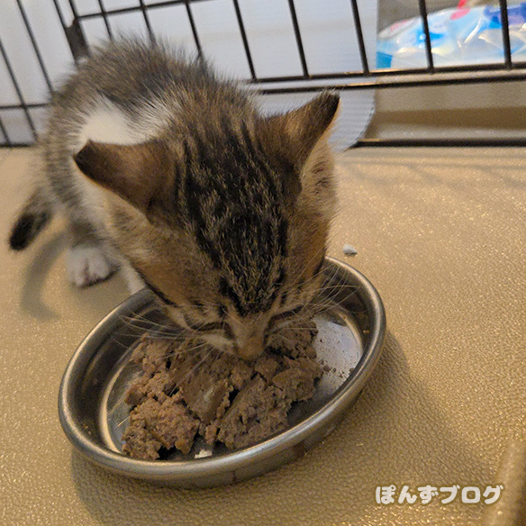 食事は保護した時からずっと、I/D缶という消化ケアの缶詰をあげています。