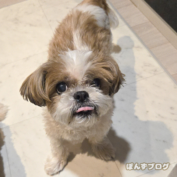 ガサガサ音で気が付いて様子を見に来る、かぼす。