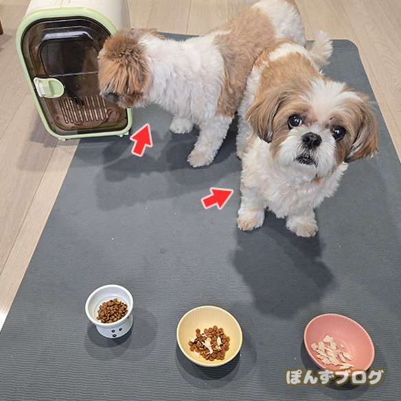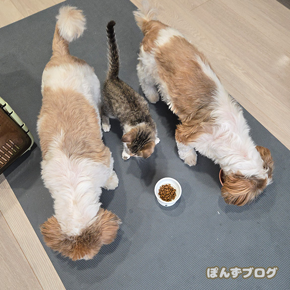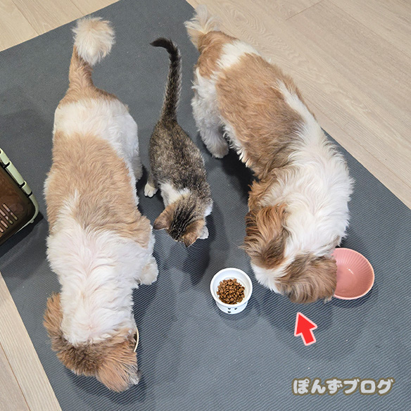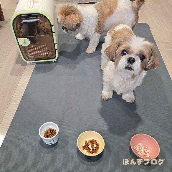 ぽんず・かぼすはそれぞれの器でおやつを食べ始めました。