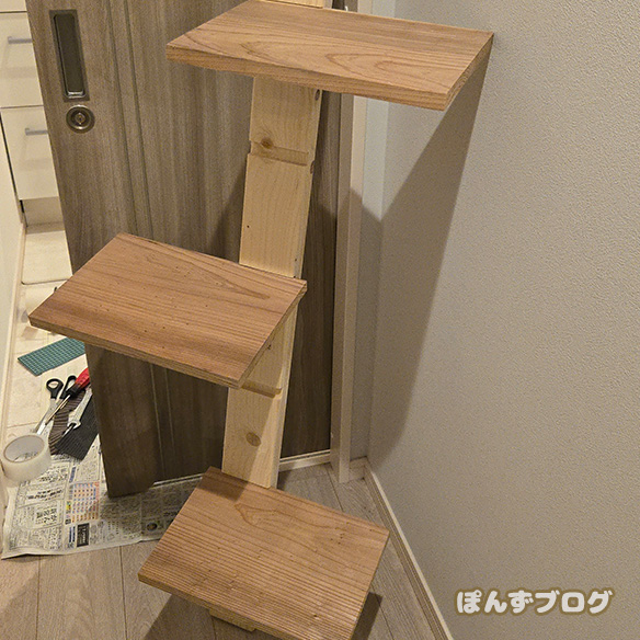 完成した自作DIYキャットタワーです。