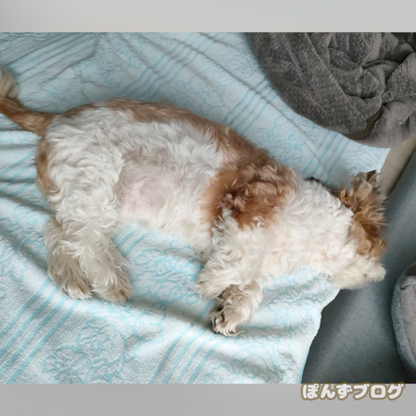 今日も『こてーん』ポーズで寝ているぽんずです。