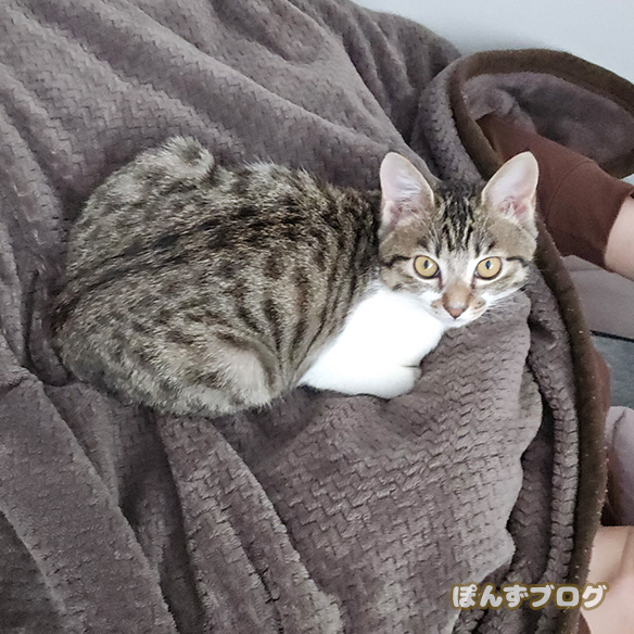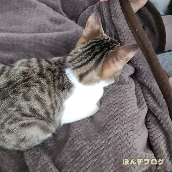ぽんずもかぼすも、飼い主の寝床に寄ってくる事が