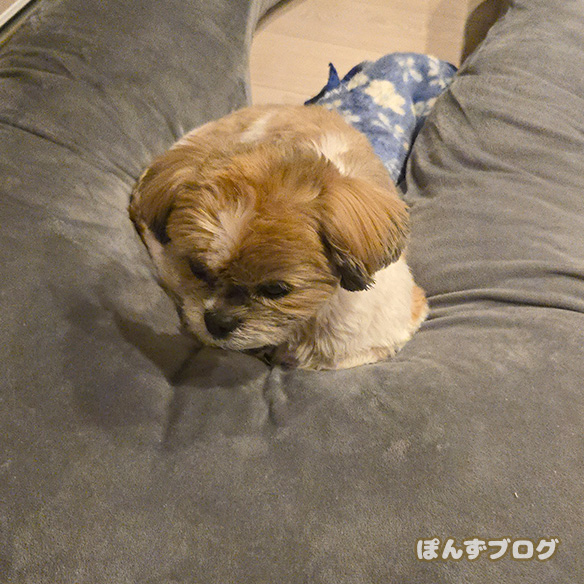 朝のぽんず、必ずほぼ6時ぴったりに起きて来て