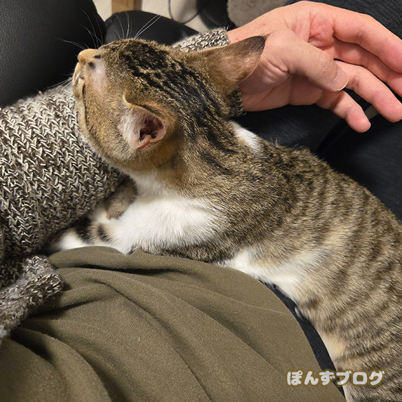 こんな風に、飼い主の手にあごを乗せて寝る様子は
