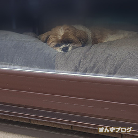 帰ってくると、今日も窓際で昼寝しているかぼすの姿が。