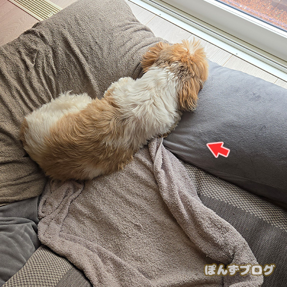 横に寝て頭もふもふしようとすると、起き上がってしまいます。