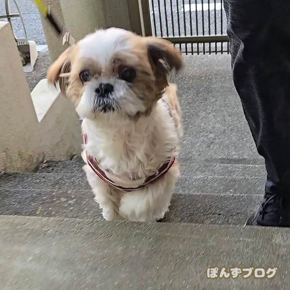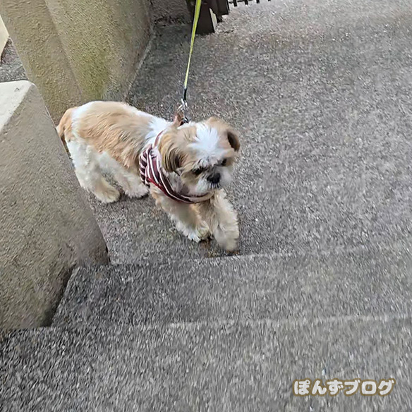 飼い主より速やかに階段を駆けがる、ぽんず。