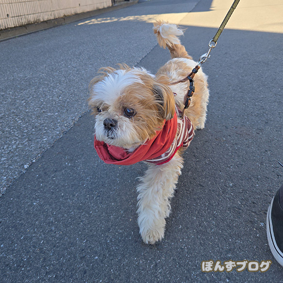 今日は珍しく、ぽんずが散歩のおねだりです。