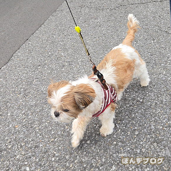 かぼすも短縮で散歩です。