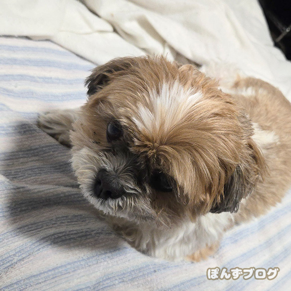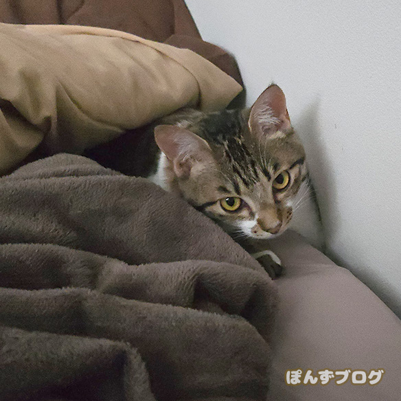 飼い主の部屋で寝ているはっさくも、さすがに4時だと眠たそう。