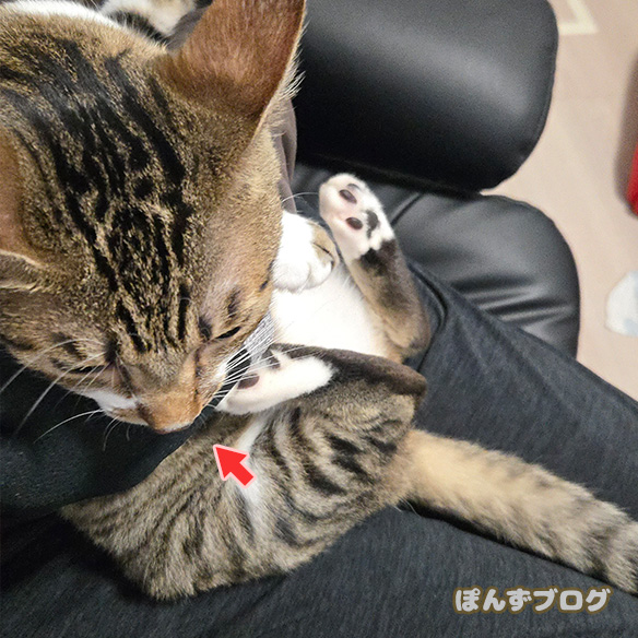 手を触って爪をいじっても、ちょっとだけ嫌がりますが