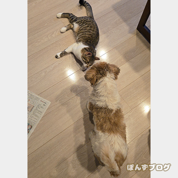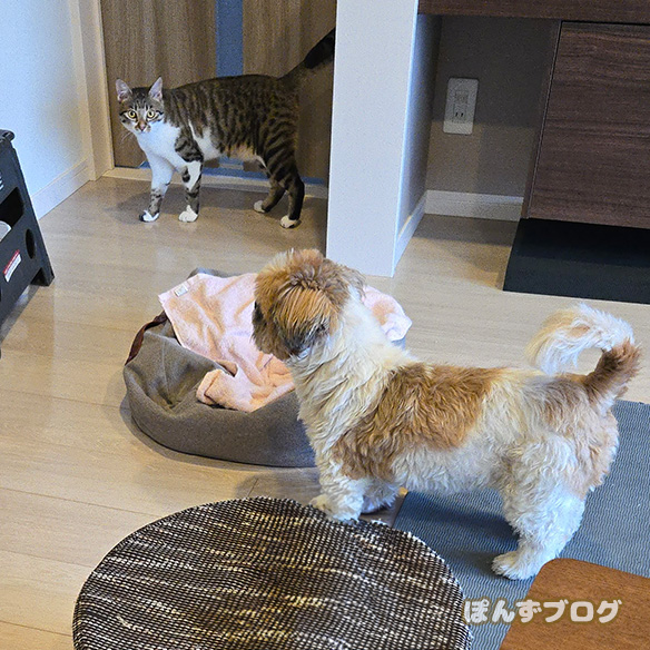 うるさそうにすぐ違う部屋に行ってしまうぽんず母さんですが、