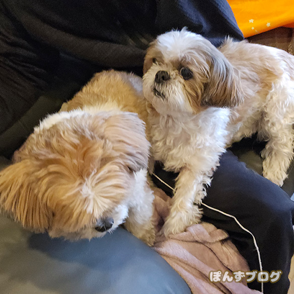 親子そろって飼い主の上に乗るのも、とっても久しぶり。
