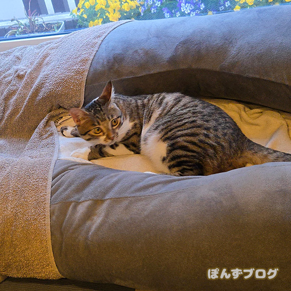 こうしてくつろぐ場面も、かぼすがいるとすぐちょっかいを出しに行きますが