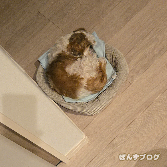 ぽんずは、はっさくがいても全く意に介せずもふ寝。