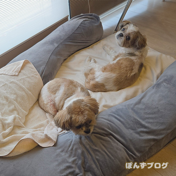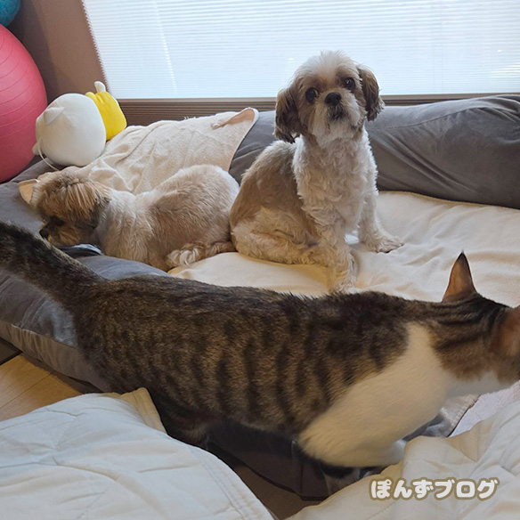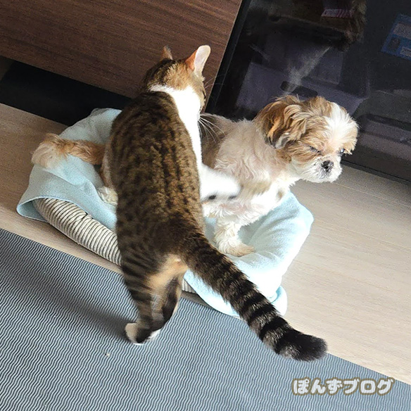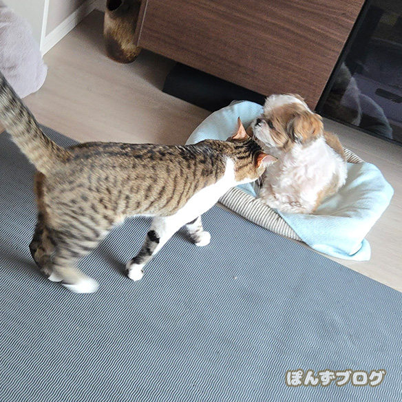 今日はなぜか、ぽんず母さんにやたらちょっかいを出します。
