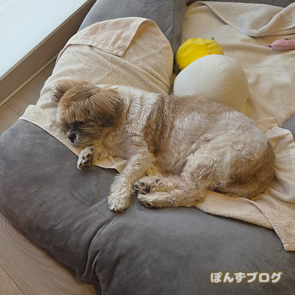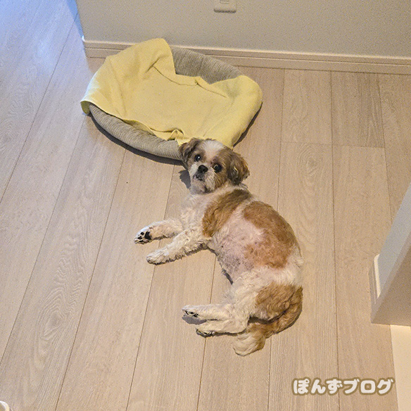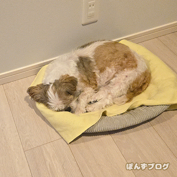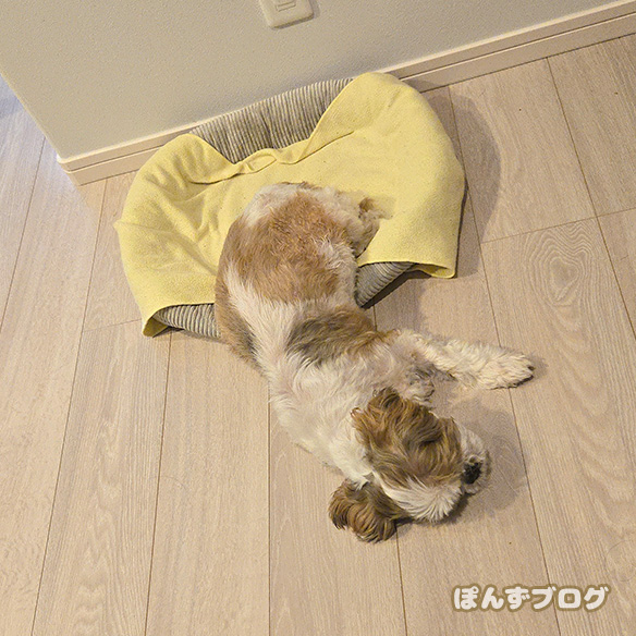 最初はちゃんと犬用ベッドで寝ているのに・・・