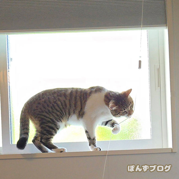 シェードの『ひも』を噛んだり、引っ張ったり、パンチしたり・・・