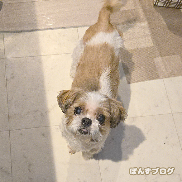 飼い主が何か話すと、まん丸い目をこちらに向けて
