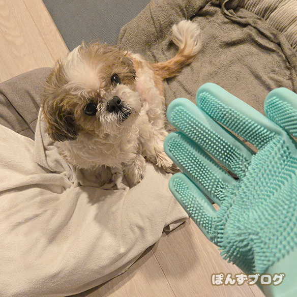 手袋タイプのブラシで