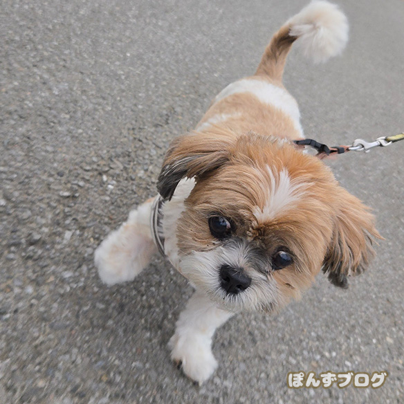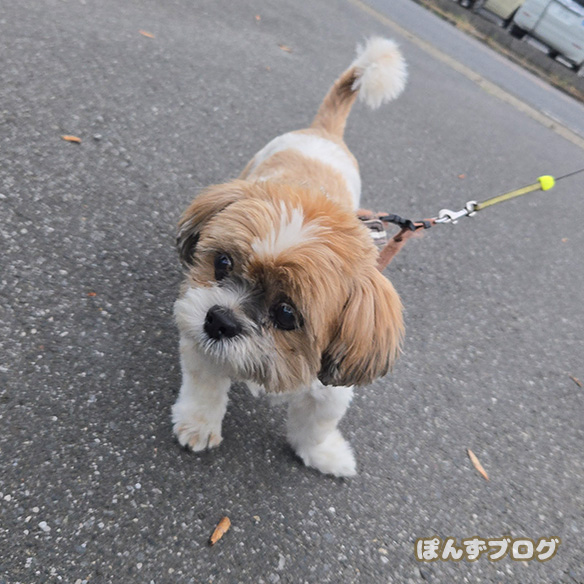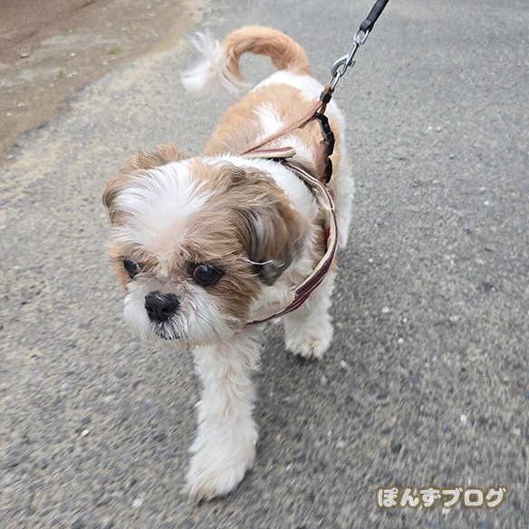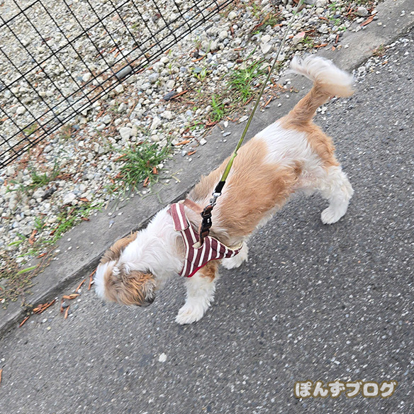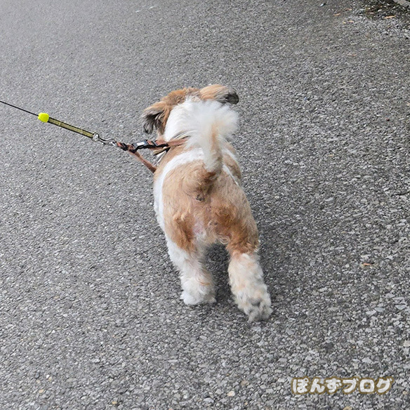 トイレして終わり、という散歩が続いていた、ぽんず。