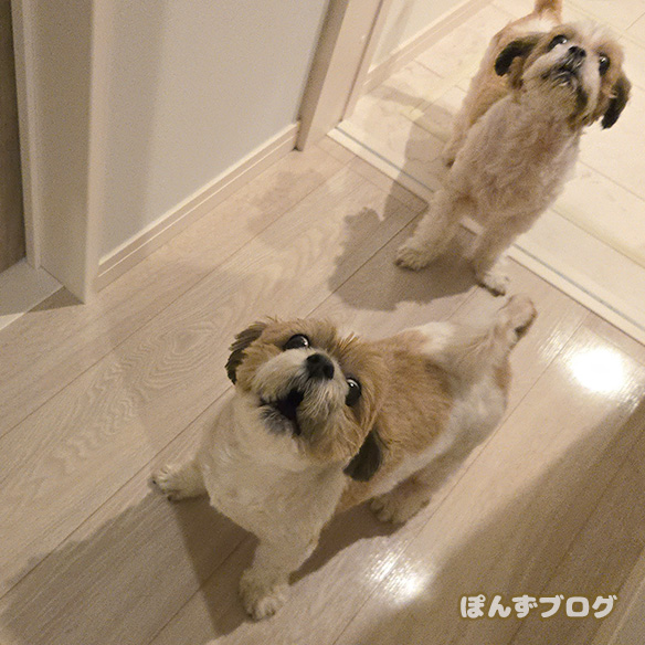 ぽんずは『わんわん!(ご飯まだか!早くしろ!)』と吠え