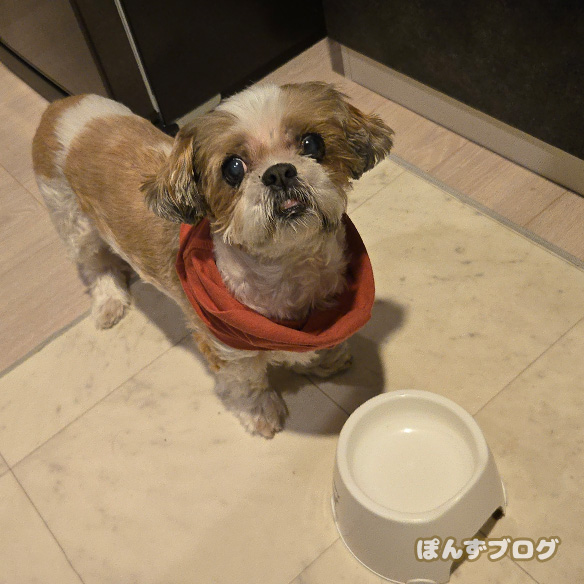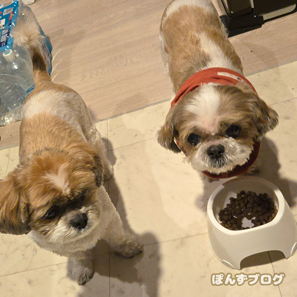 おやつの時間はトッピングなしでドッグフードのみで食べ