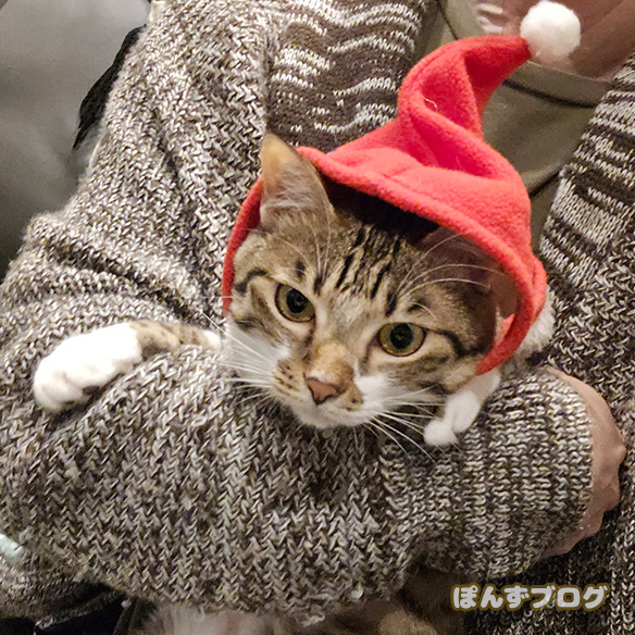 はっさくにもサンタ帽子かぶせてみましたが