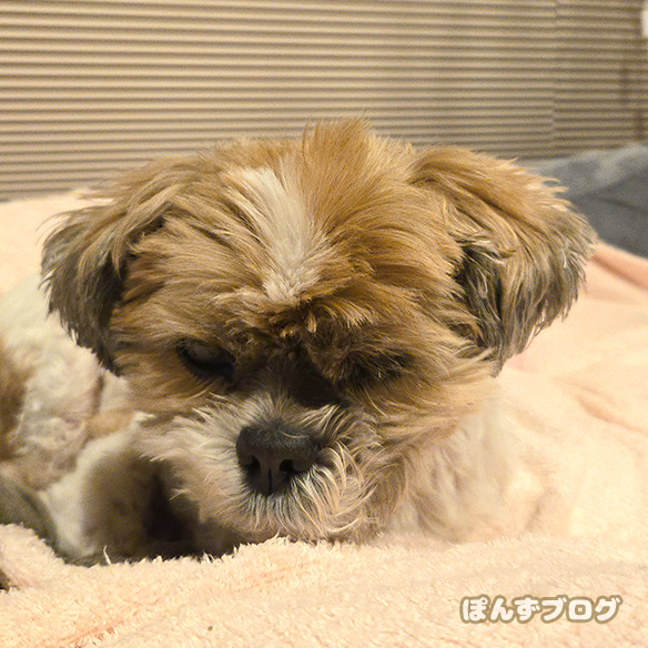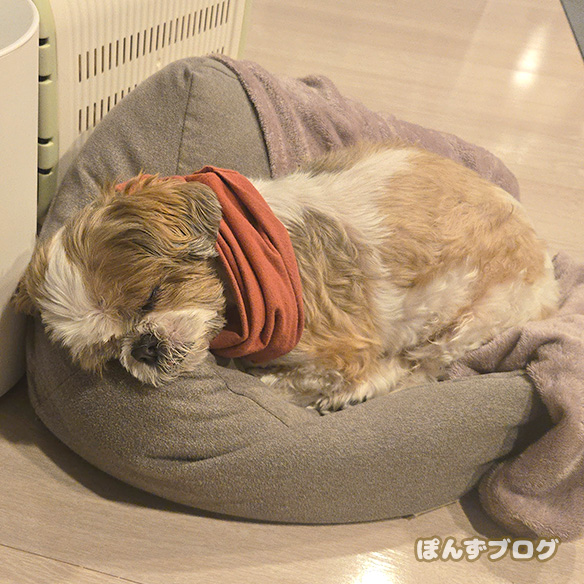 今日もすやすや寝ている時は本当に静かな、ぽんず。