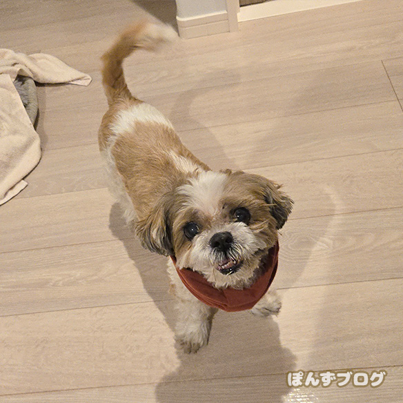 おさんぽの後は、元気におやつのおねだりです。