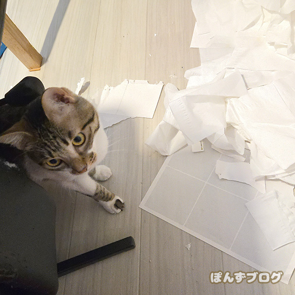 とにかく紙類を引っ掻き回すのが好きみたいで