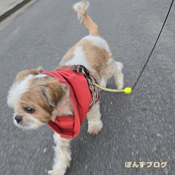 そんな中ですが、ぽんずは元気に散歩へ。