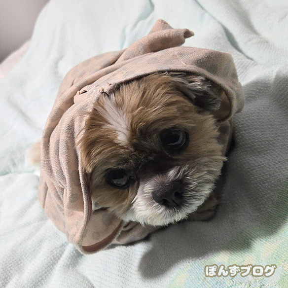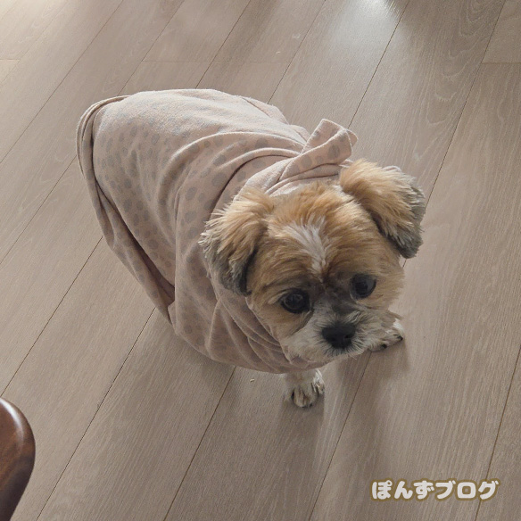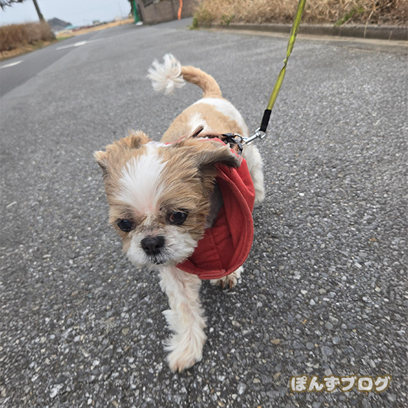 散歩の前、寒そうにしていたかぼすに