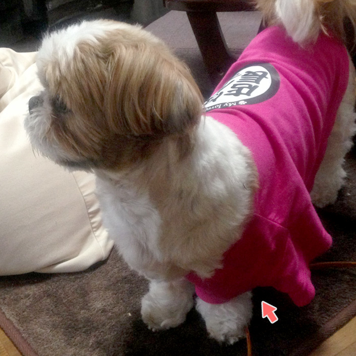 わかりますか?これ。 右の前足が脱げ、左の前足に入ってるという・・・。