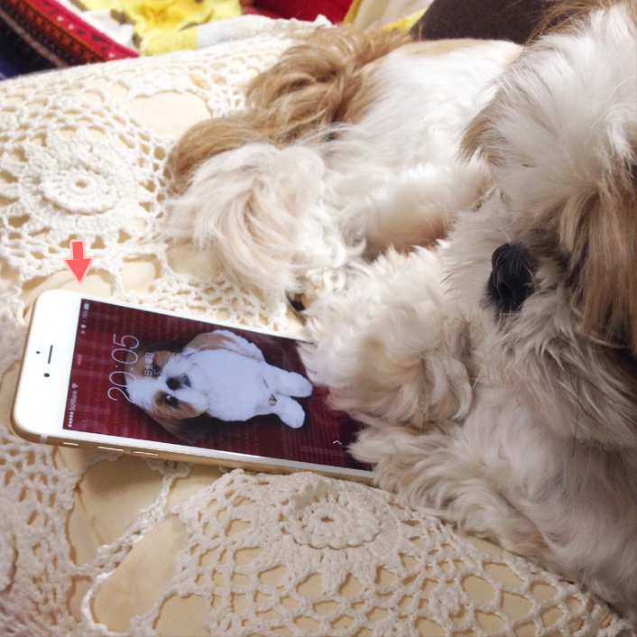 iPhone6、かぼすもクンクンして興味深々でしたよ(笑)