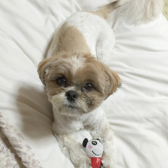 今日も朝からぽんずは、もふ寝。