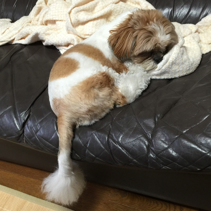 今日は午後から雨が降りそうでしたので、早めに散歩に行きました。 そのあとは、ずっとこうしてくっつき虫。 ぽんずが寝床を変えると、かぼすも移動。 ...