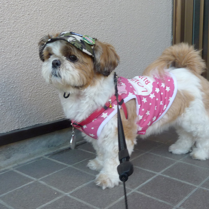 2人共可愛いコーディネートですね(^o^)太郎さんに抱っこされてるぽんずちゃんはあどけない表情が何とも言えません!いつもおいらのかぼちゃんのスカート姿に胸きゅんです^_^;早朝散歩は朝日が照りつける前の5時過ぎに頑張って行ってます(..;)