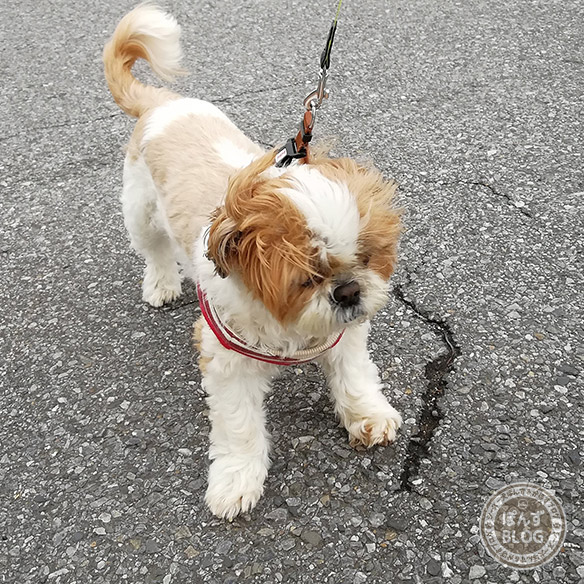 その後、また雨が止んで地面が乾き出したので、かぼすを連れて2回目の散歩へ。