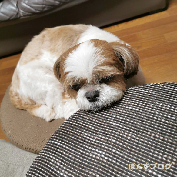わんこはあごをどこかに乗せてると、