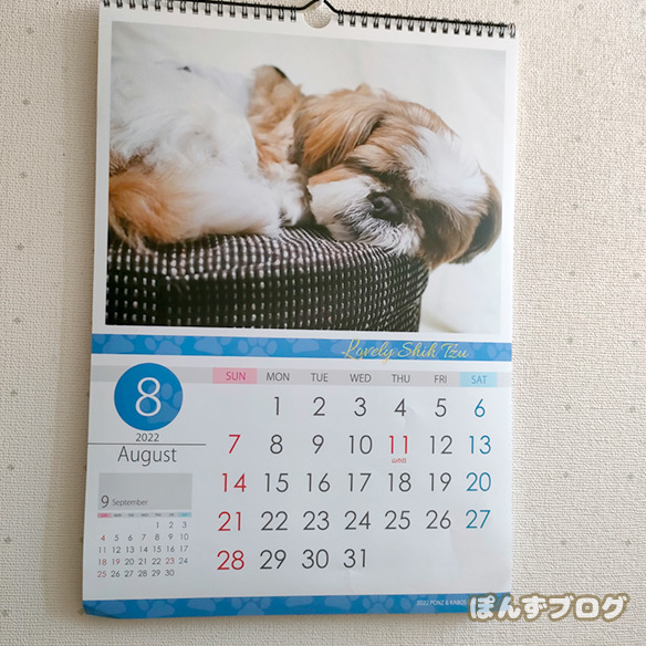 今月のカレンダーは、お昼寝しているぽんず。