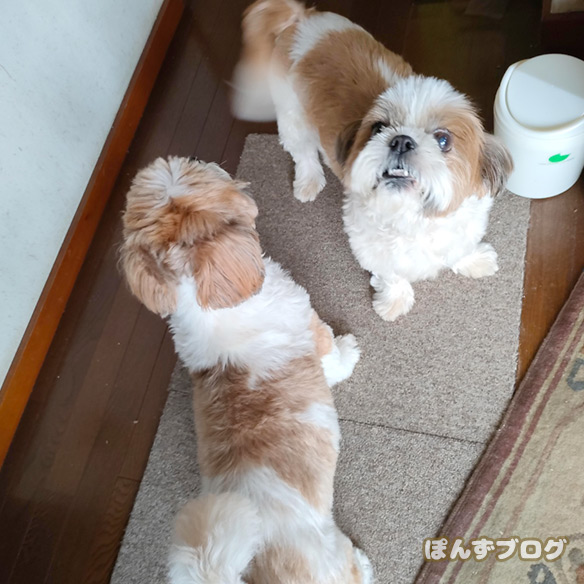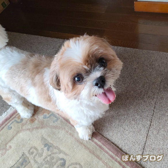 散歩の時の100倍テンションでしっぽを振る、ぽんず。