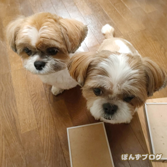 その場から離れない、ぽんずとかぼす。