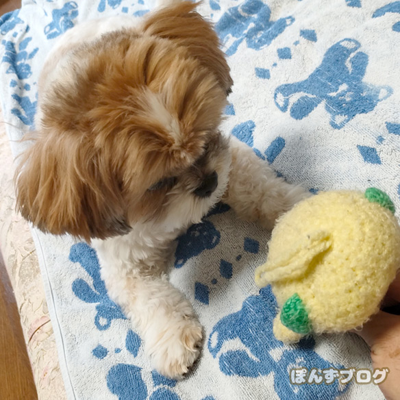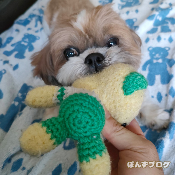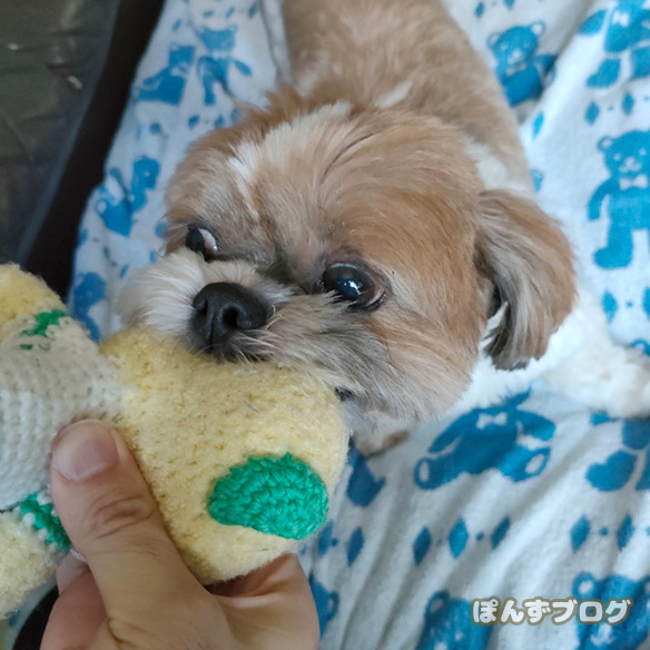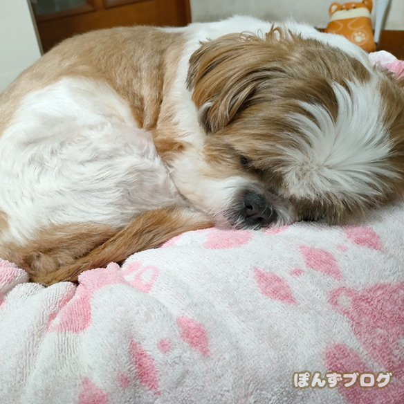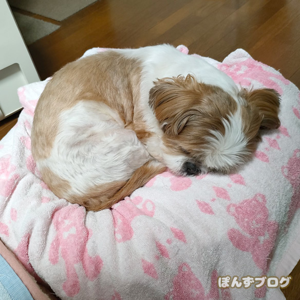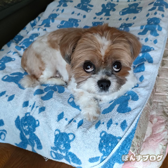 ぽんずは昨夜のアポキルが効いているのか、ほとんど掻く所を見ていません。